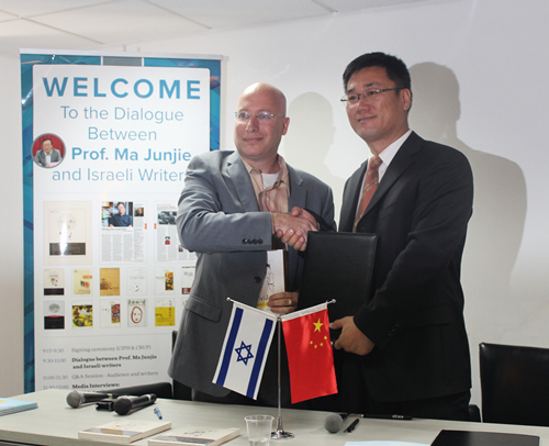 中国人民大学出版社社长李永强和以色列Contento出版社总裁Netanel Semrik出席签约仪式