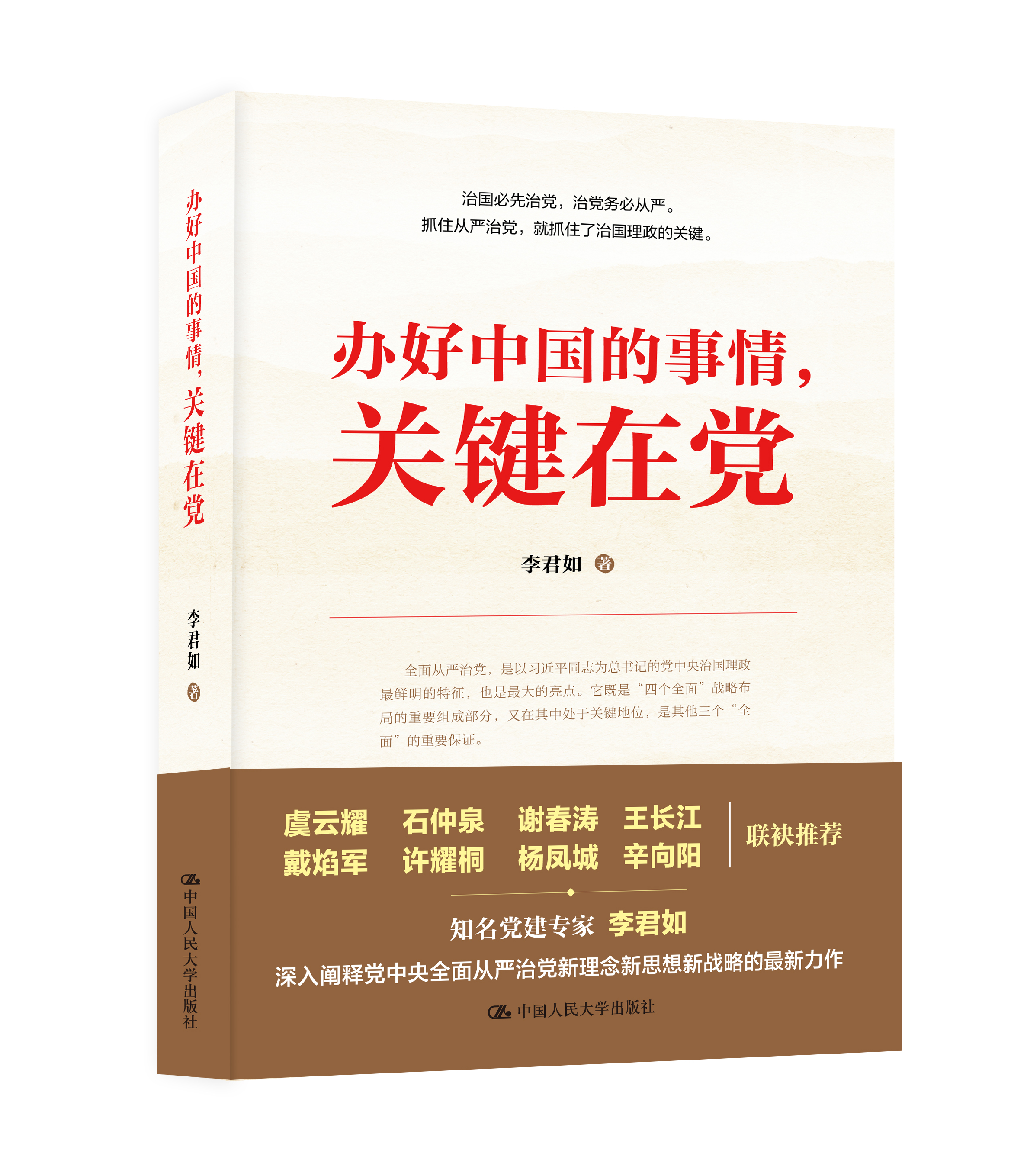 中国人民大学出版社出版的李君如新著《办好中国的事情,关键在党》,对十八大以来以习近平同志为总书记的党中央全面从严治党的理论与实践作了全面的解读。